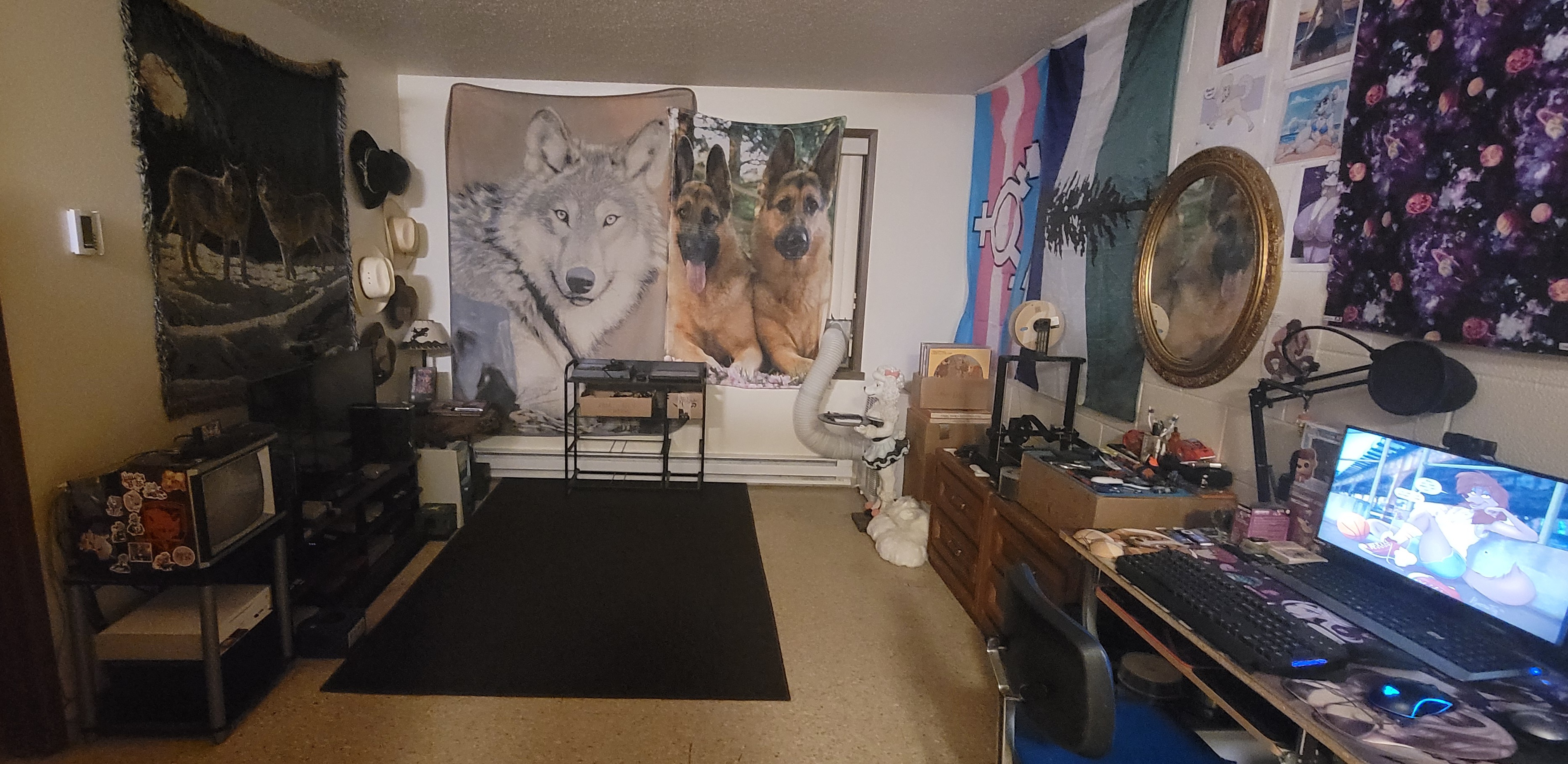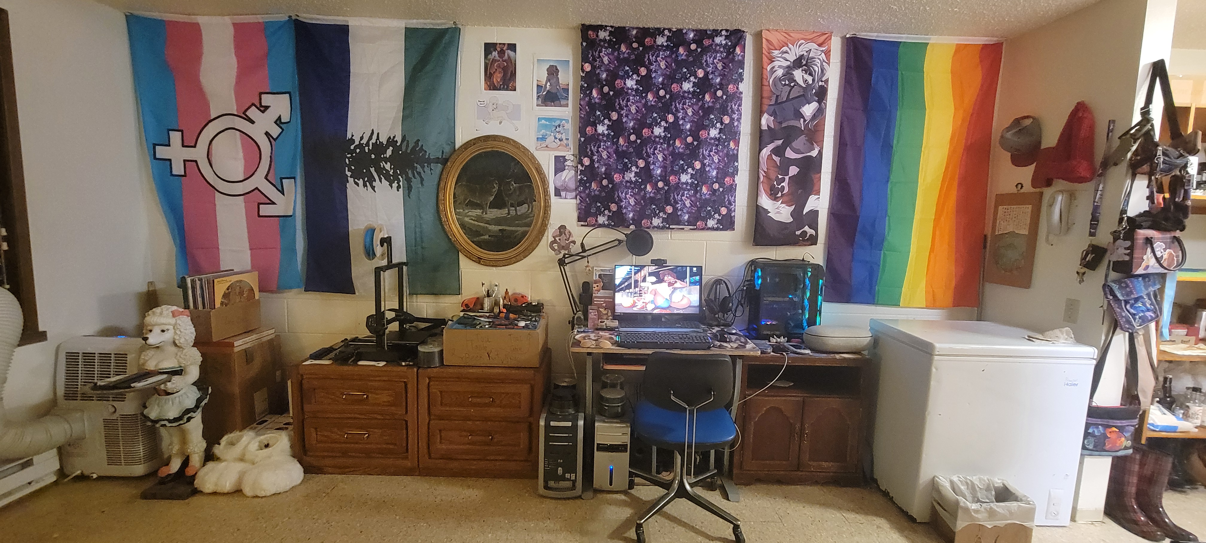 Primary PC: Name: Loona 🐺 Specs: MSI Pro B550M-VC Wifi M-ATX Mobo; Ryzen 5 5600x CPU; Ryzen RX 7600 Hellhound 8gb GPU; G.Skill Aegis 64gb (4x16gb) DDR4 2666MHz Ram; 512gb Silicon Power NVME SSD; 4tb Seagate Barracuda HDD; Gamdias Kratos M1-750B PSU; Gamdias Aura GC1 ATX Case 🖥 Second PC: Name: Destiny 🐩 Specs: Dell Optiplex 7050; Intel i7-6700 CPU; Ryzen RX 6400 4gb GPU; 32gb (2x16gb) DDR4 Ram; 512gb NVME SSD; 2tb Western Digital Hard Drive 🖥 Third PC: Name: Perdita 🐶 Specs: Dell Inspiron 530; Intel Core 2 Duo E8400 'Wolfram' CPU; AMD Radeon R5 430 2gb GPU; 8gb DDR2 Ram; 1tb Western Digital HDD 🖥 Fourth PC: Name: Balto 🐺 Specs: HP Pavilion 752n; Intel Pentium 4 CPU; 1gb DDR ram; 🖥 Fifth PC: Name: Georgette; Specs: AMD Duron 797MHz CPU; 512mb DDR Ram 💻 Primary Laptop: Name: Sasha 🐕 Specs: Dell Latitude E6410; Intel i7-620M CPU; NVIDIA GeForce 3100M GPU; 8gb DDR3 Ram; 500gb HDD 💻 Second Laptop: Name: Saluki 🦴 Specs: Lenovo 500e Chromebook Gen 2 📱 Primary Phone: Samsung Galaxy S21 📱 Second Phone: Samsung Galaxy 10e 📱 Third Phone: Samsung Galaxy S7 Edge 📱